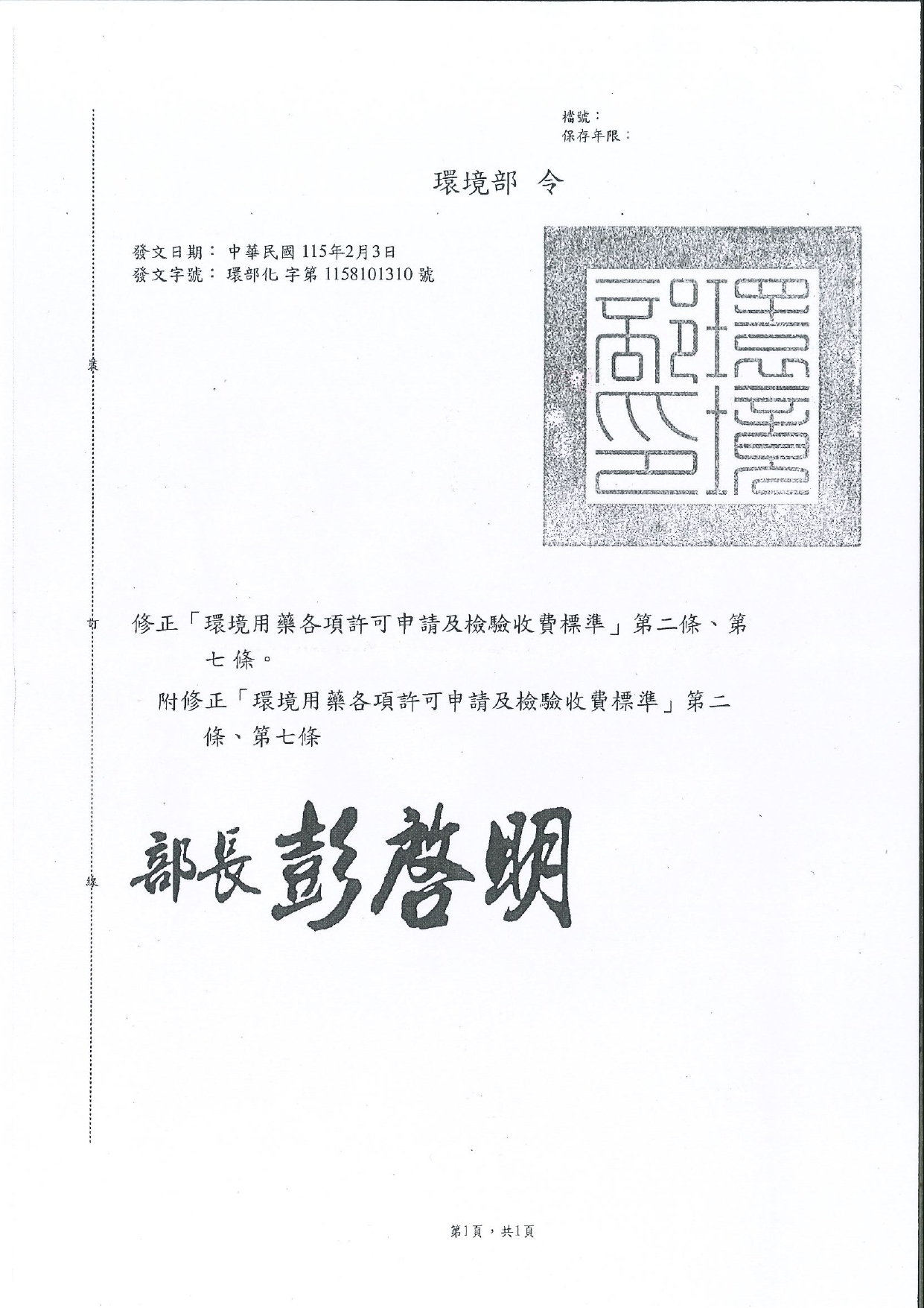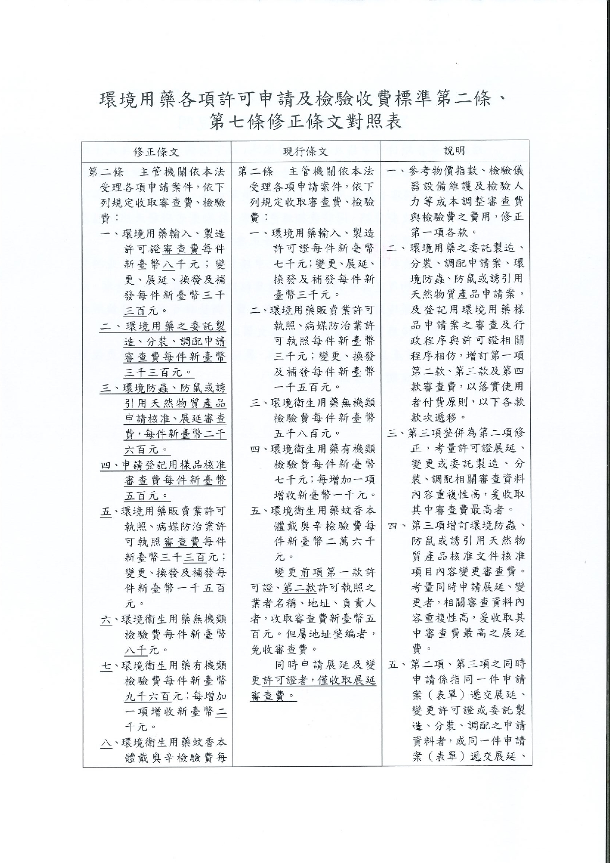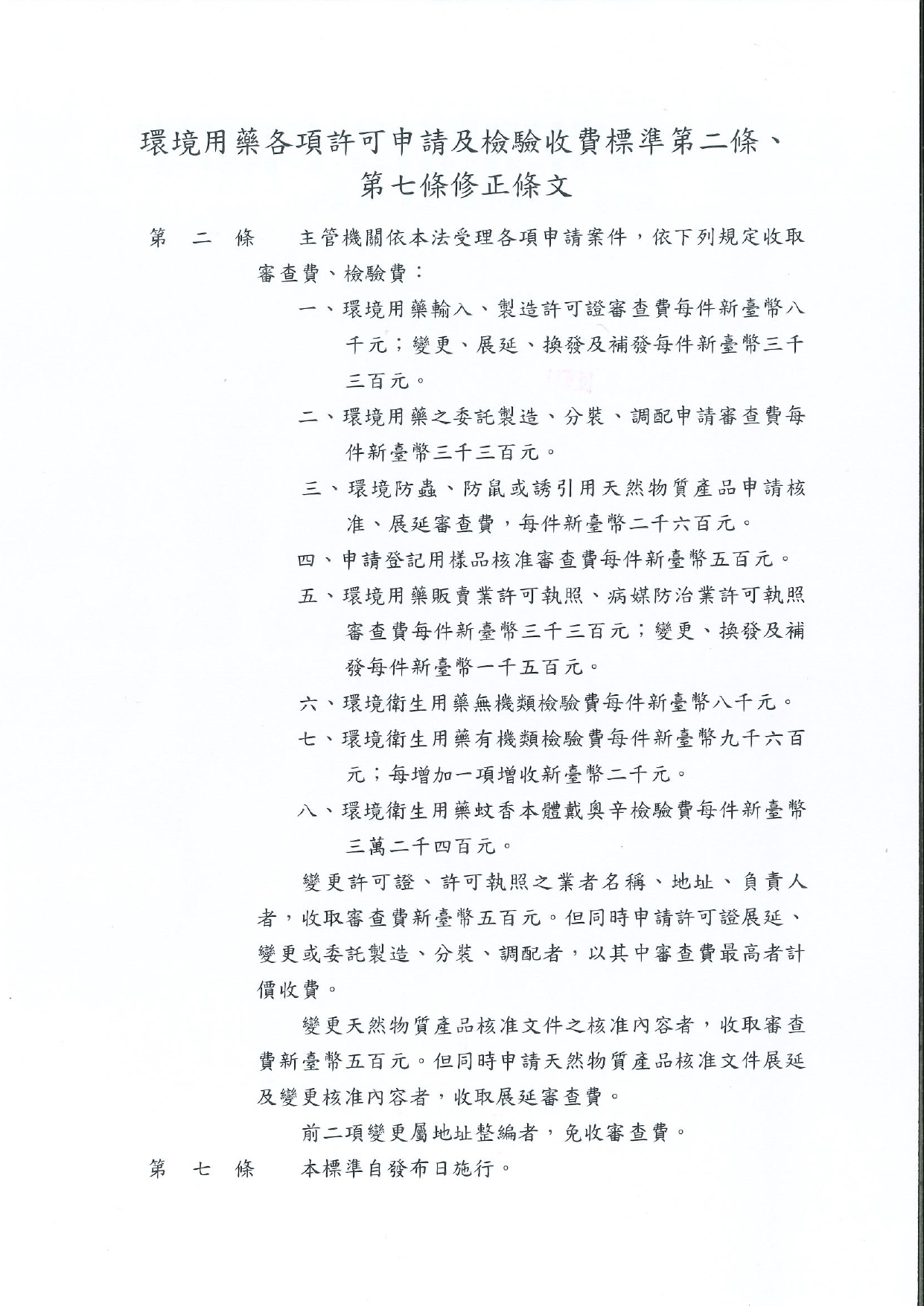 0203_環境部_環部化字第1158101310D號_環境用藥各項許可申請及檢驗收費標準修正發布4