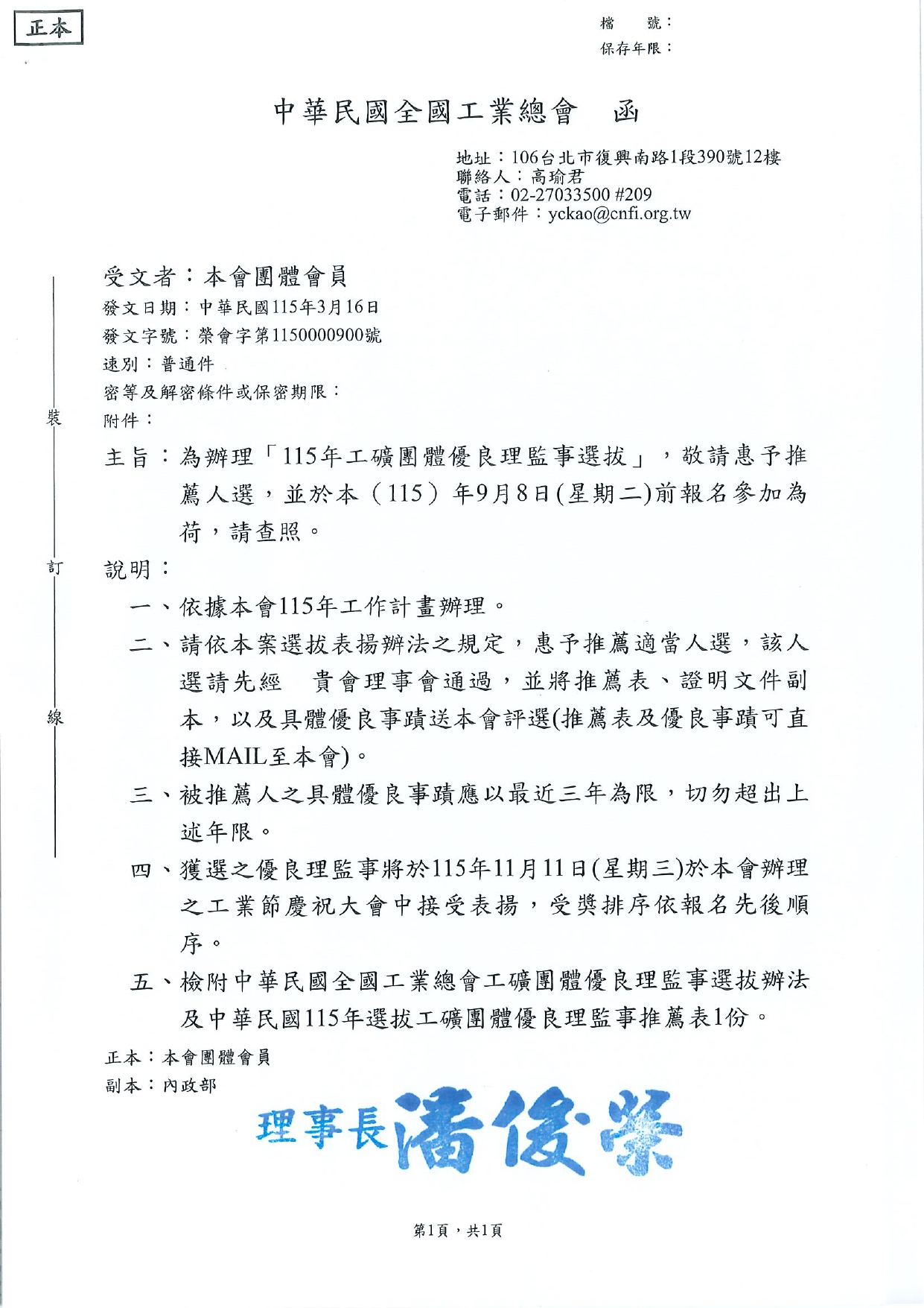 0316_中華民國全國工業總會_榮會字第1150000900號_115年工礦團體優良理監事選拔推薦4