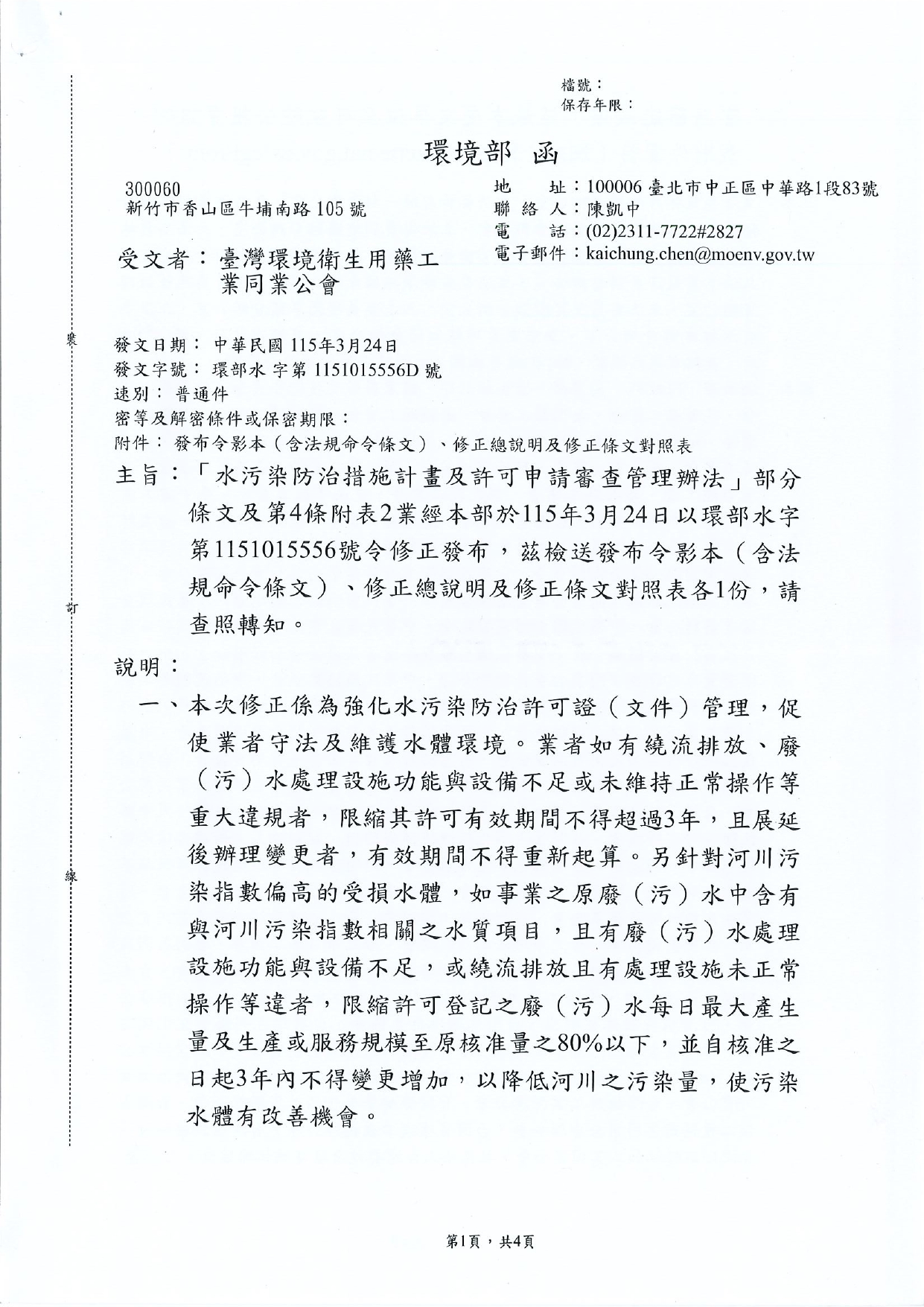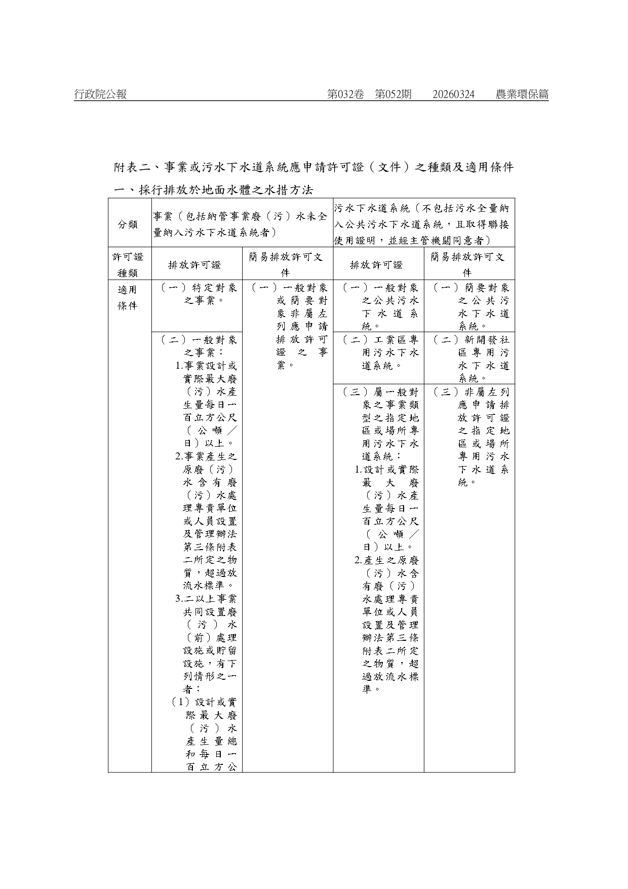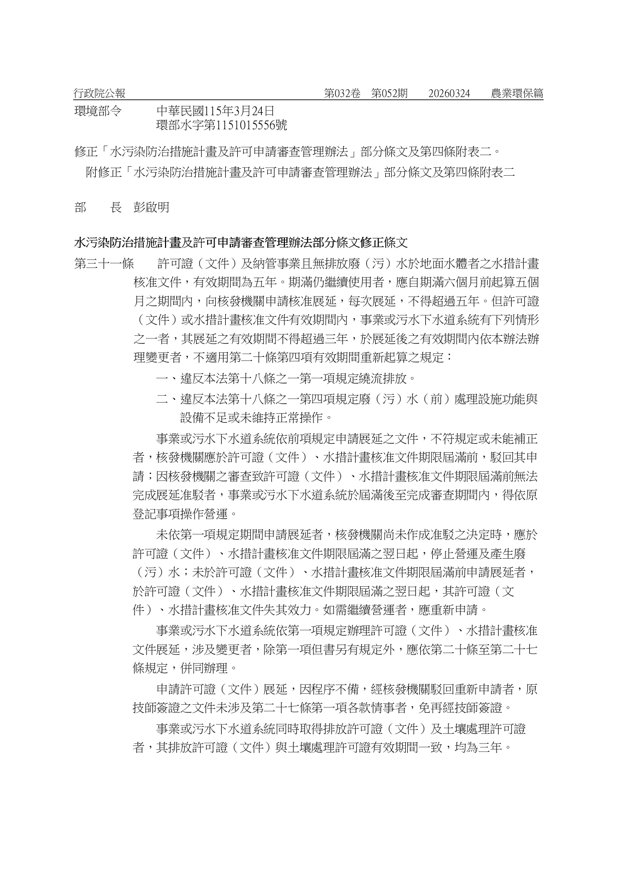 0324_環境部_環部水字第1151015556D號_水污染防治措施計畫及許可申請審查管理辦法修正4