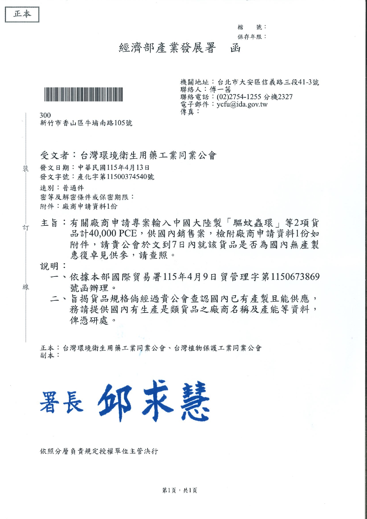 0413_產發署_產化字第11500374540號_專案輸入中國大陸製驅蚊蟲環等2項貨品意見徵詢_[徵詢意見]4